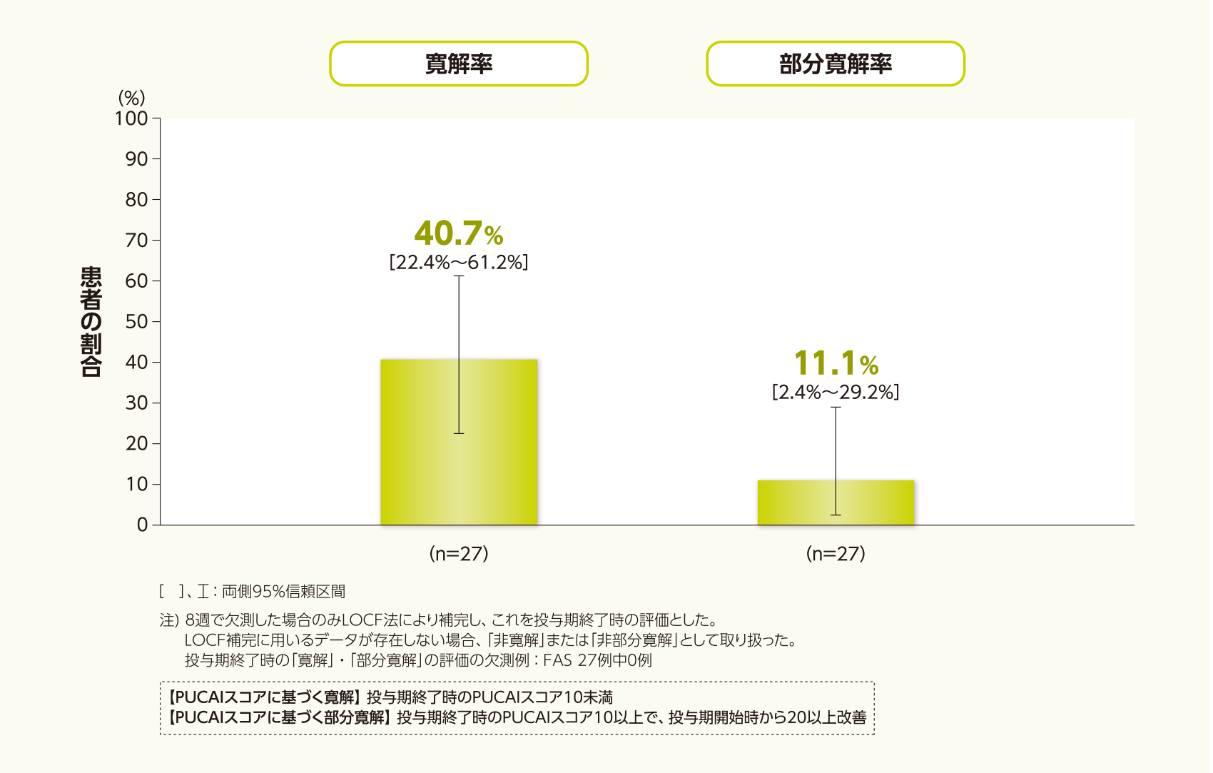 - Clinical Study:小児(各臨床試験での定義:17歳未満)の潰瘍性大腸炎患者に対する臨床成績:活動期 PUCAIスコアに基づく有効性評価項目
